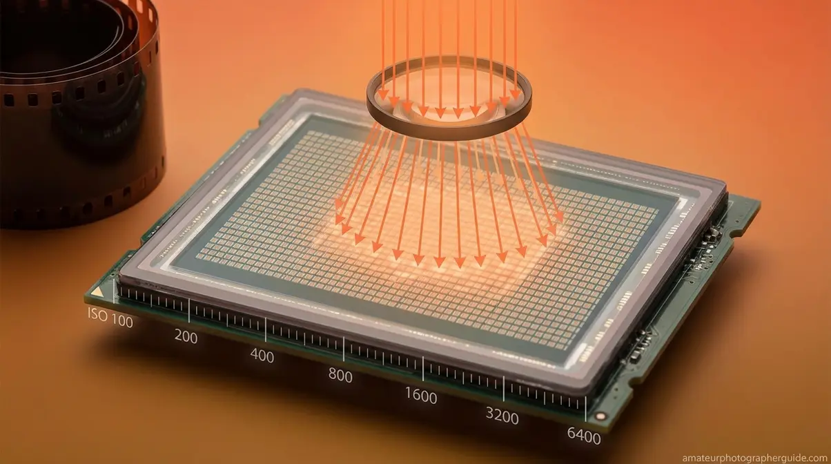 Digital cameras kept the ISO numbering system entirely. The crucial difference: you can now change sensitivity shot by shot — no physical film to swap. Think of it like switching from needing to buy a new film roll every time the lighting changed, to simply turning a dial.